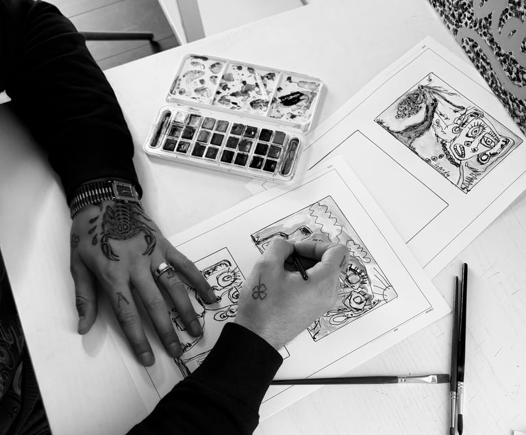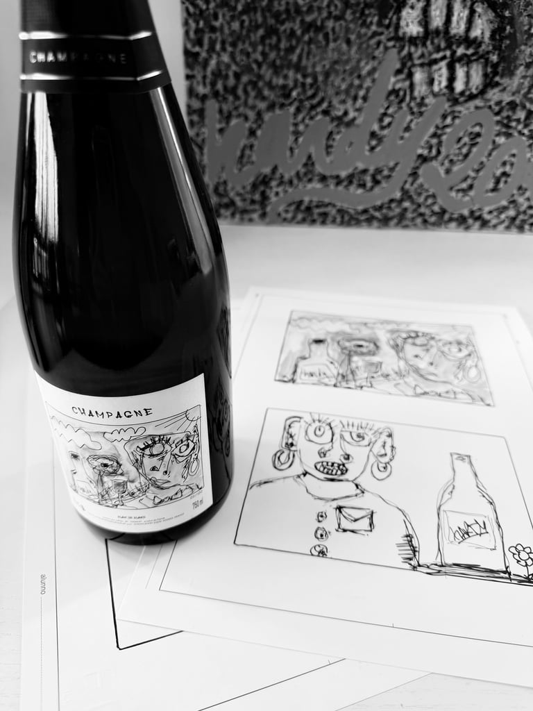 Champagne labels inspired by original paintings.